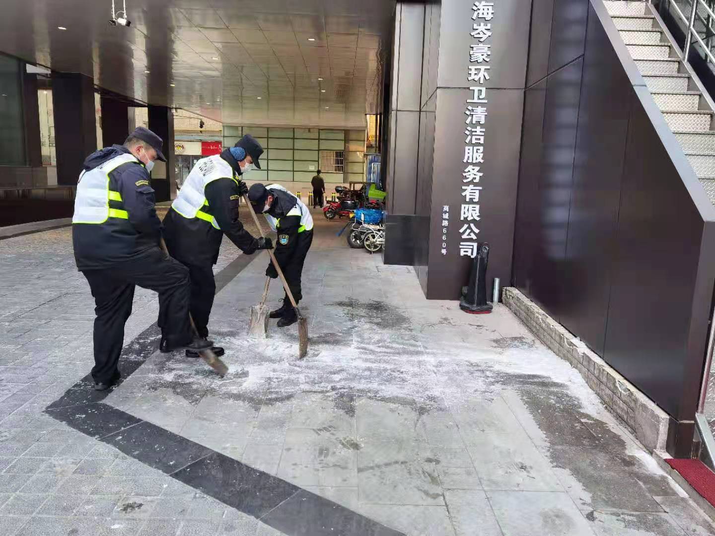 路面結冰存隱患 傾情守護助平安—陸家嘴綜合管理項目隊員守護平安路?