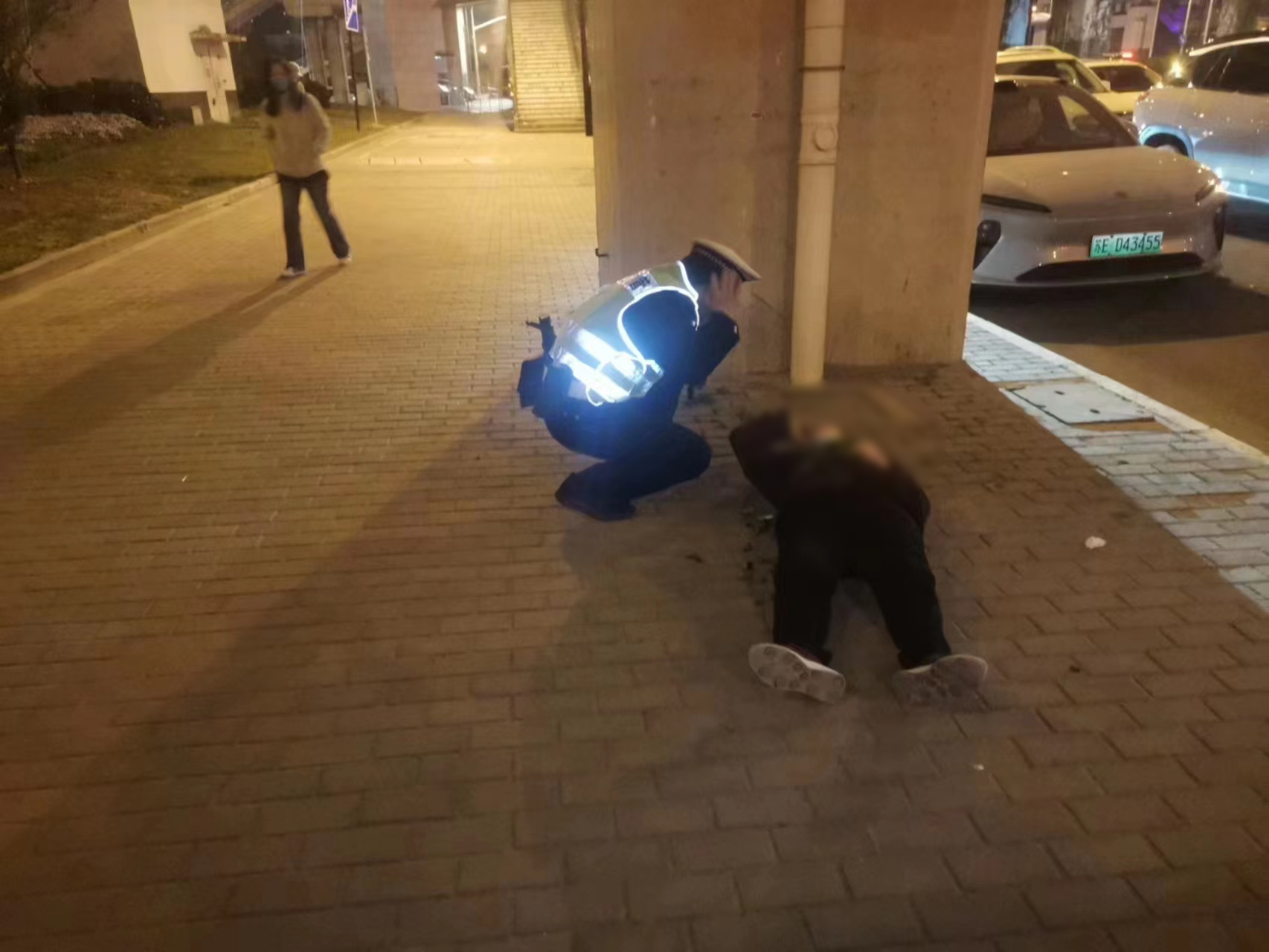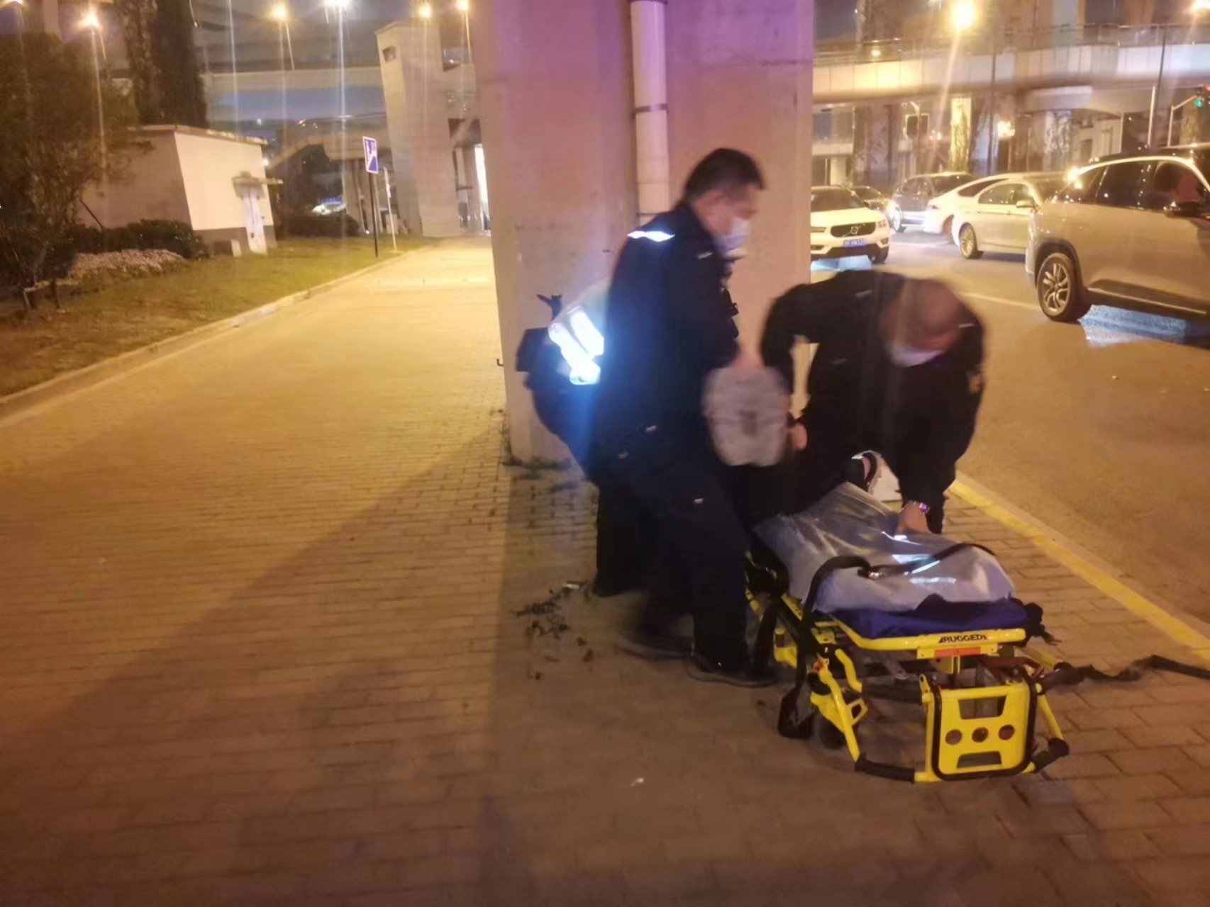 當日20:00,公司員工高昌炎在上海閔行外語(yǔ)學(xué)校護校疏導交通時(shí),發(fā)現一位老人躺在人行道上,便快步跑到老人身邊察看。