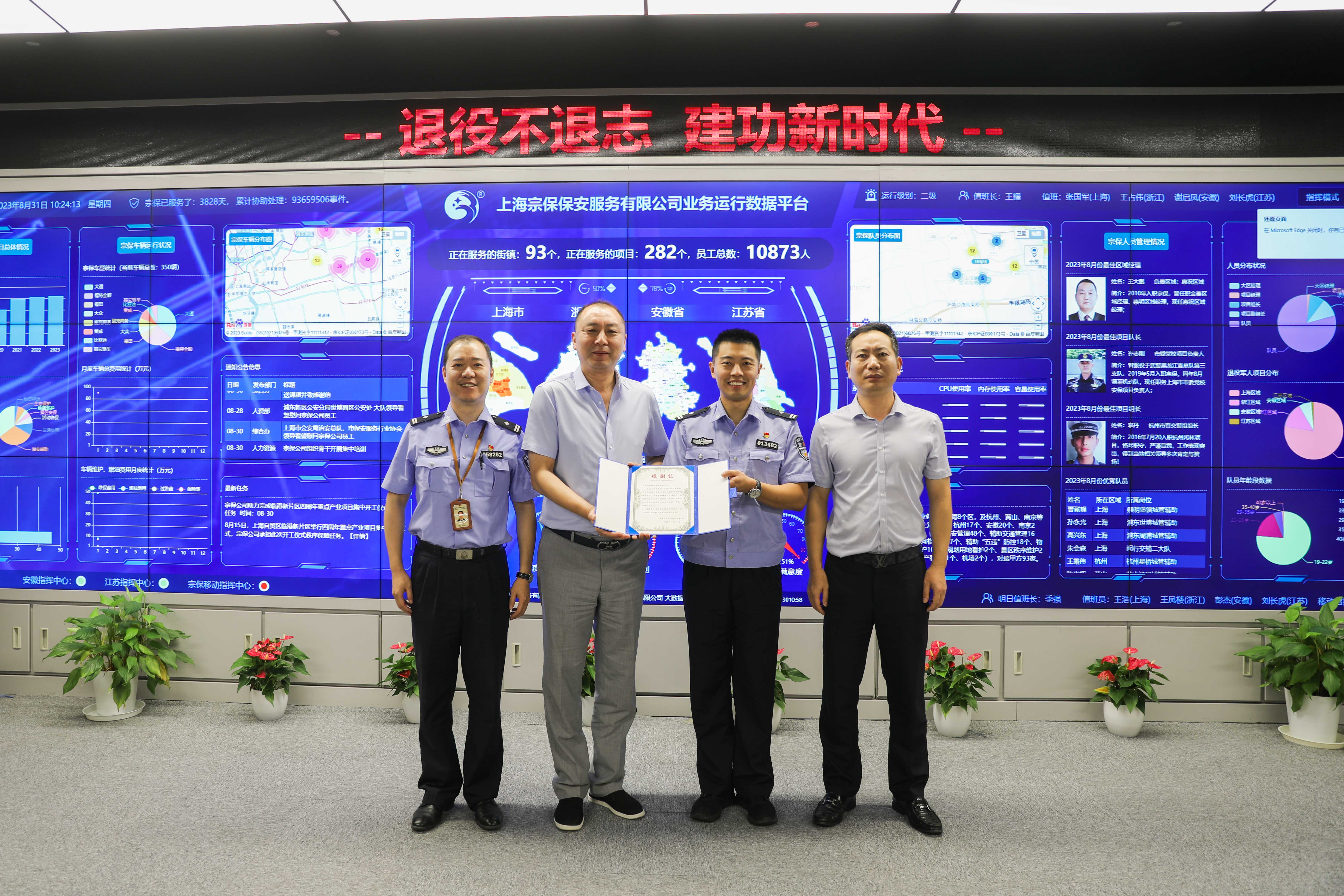 8月31日,浦東新區公安分局世博園區公安處交巡警大隊將一面繡有“守一方熱土 保一方平安”的錦旗和一封感謝信送到宗保公司董事長(cháng)王耀的手中,感謝公司對交巡警大隊工作的大力支持。