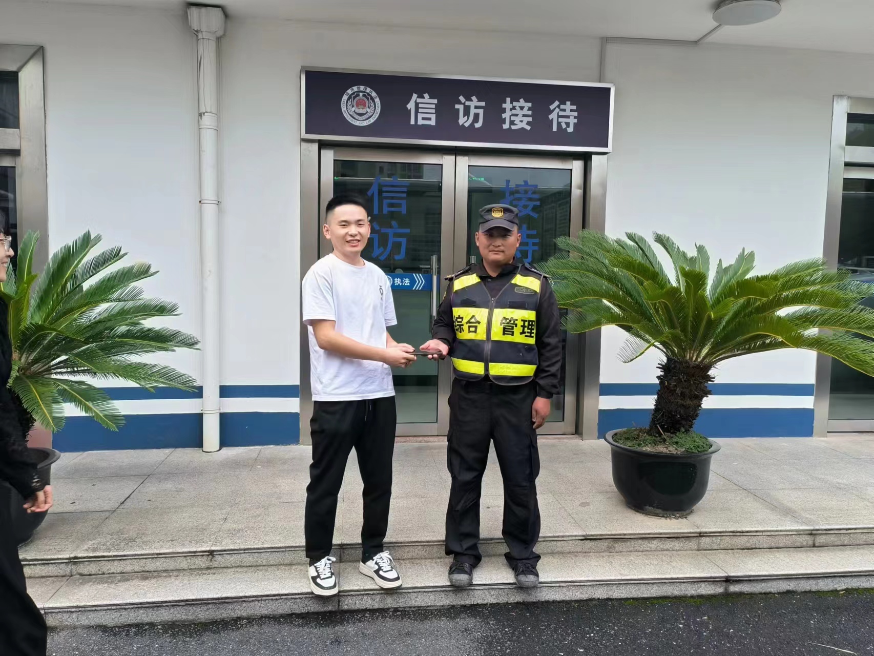 10月8日13:30,宗保公司駐浦東新區周浦市容項目員工賈勝輝在周秀路巡查時(shí),撿到一部華為手機。因手機設有鎖屏密碼,一時(shí)無(wú)法聯(lián)系到失主,賈勝輝報告班組長(cháng)后便在原地等待失主。大約過(guò)了10多分鐘,一男子打來(lái)電話(huà)自稱(chēng)是失主,賈勝輝了解情況后,就與他約好在周浦鎮城管執法中隊碰面。很快,男子趕到約定地點(diǎn),成功地解開(kāi)了鎖屏密碼。賈勝輝確認男子是失主后,將手機交還給了他。男子拿著(zhù)手機連連向賈勝輝道謝,并特意撥打了12345上海市民熱線(xiàn),贊揚宗保公司駐周浦市容項目員工賈勝輝拾金不昧的行為。