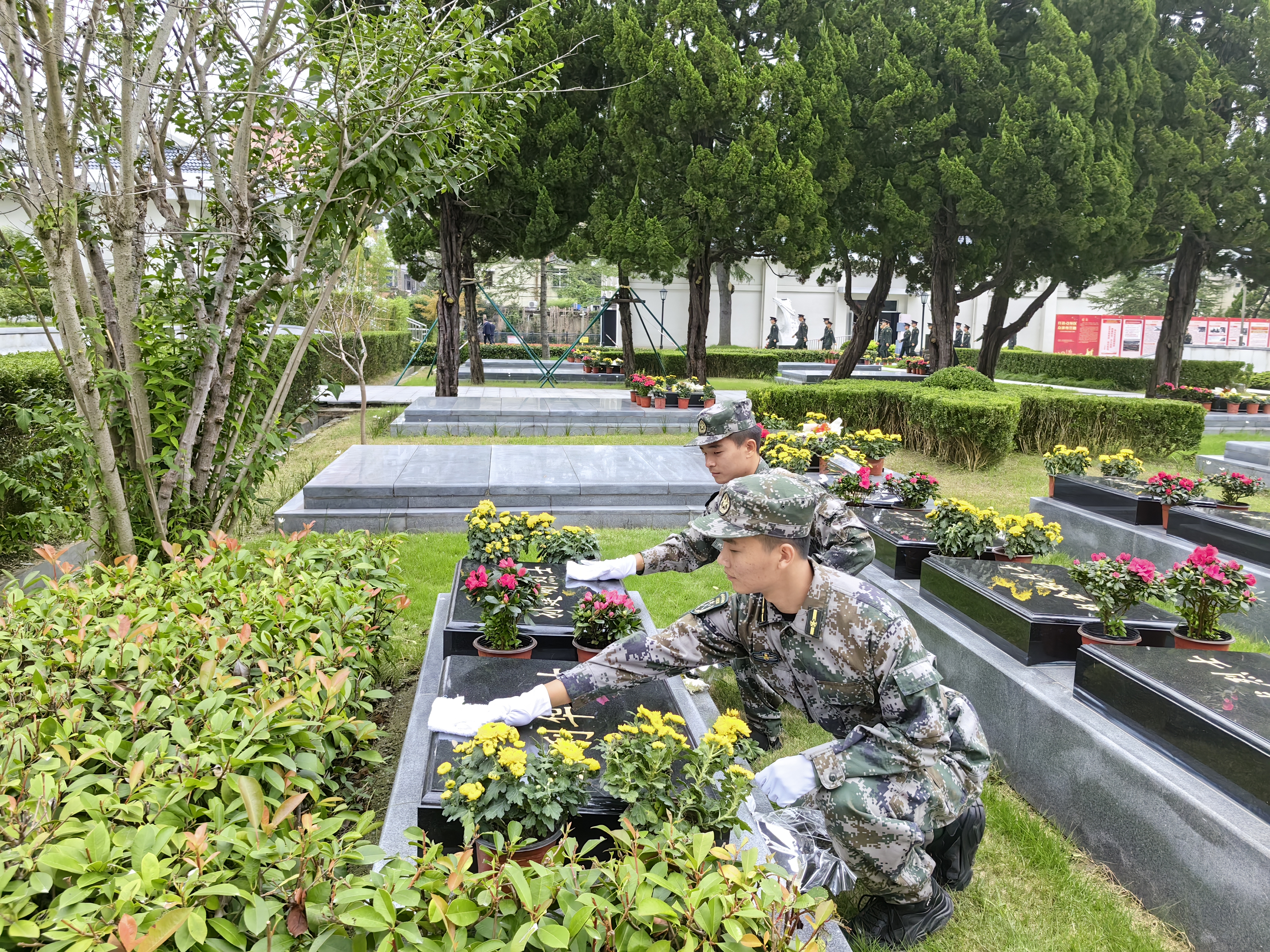 接著(zhù),浦東區隊志愿者來(lái)到每位革命烈士墓碑前,擦拭烈士墓碑,整理旁邊便道,清掃草葉雜物,以實(shí)際行動(dòng)緬懷革命先烈。