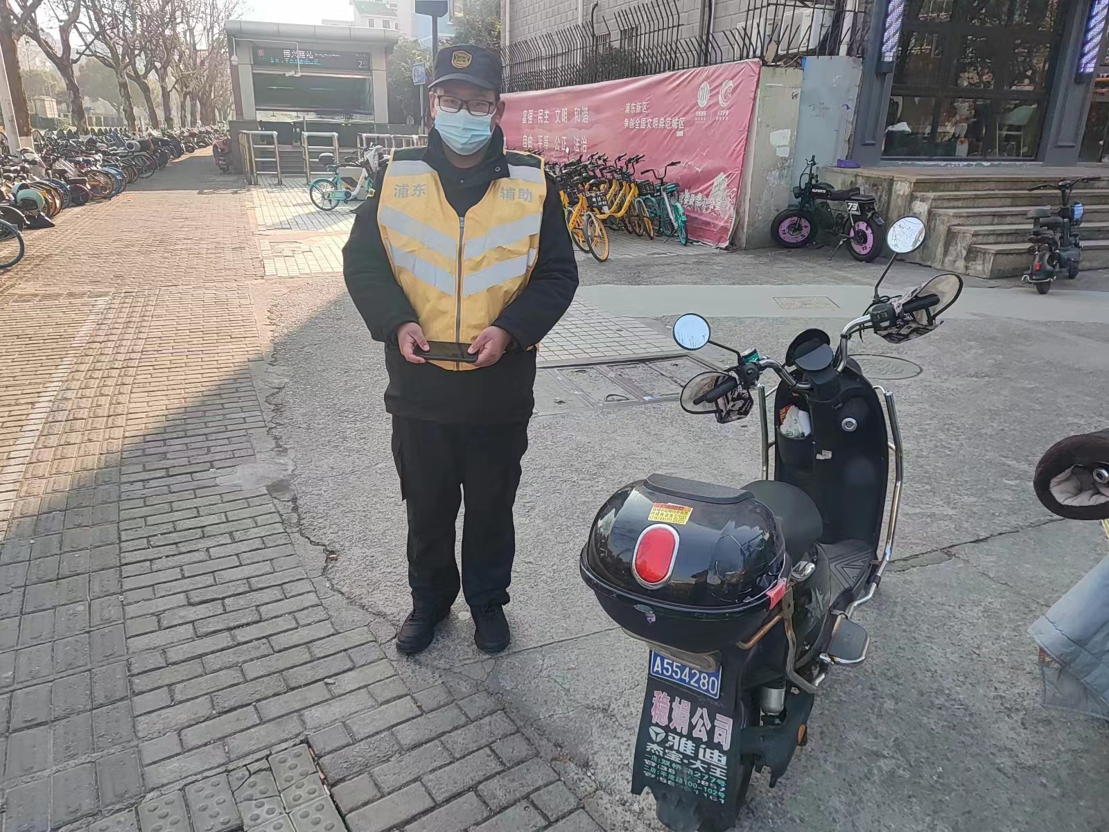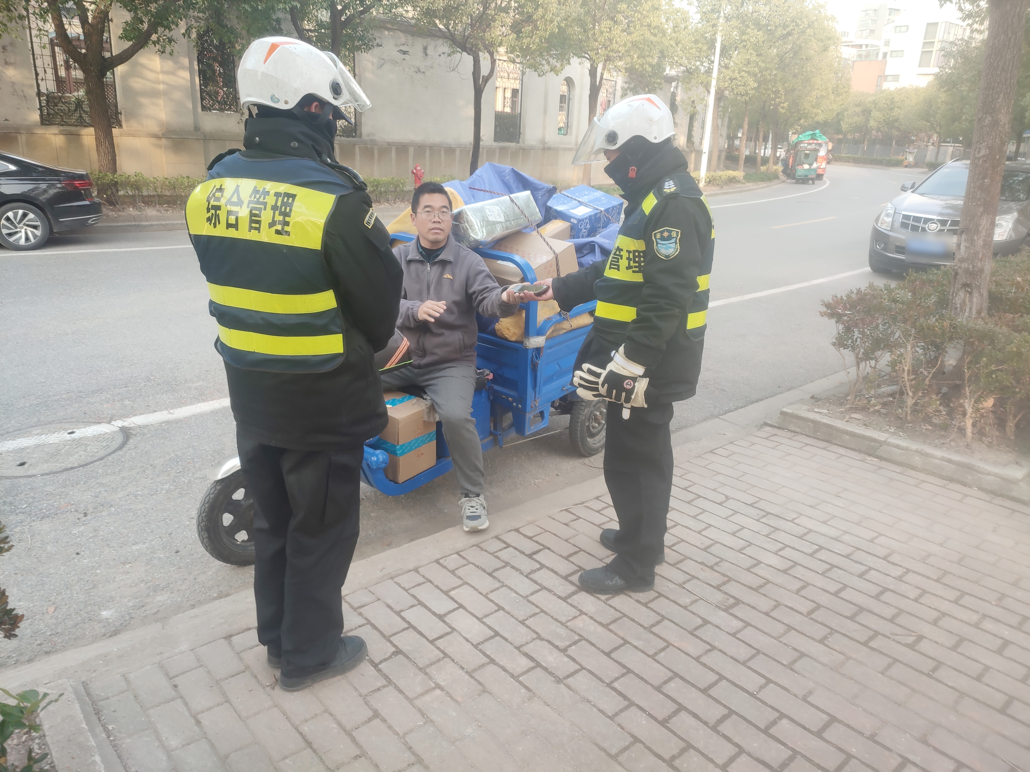 12月23日15:00,宗保公司駐浦東新區高行市容項目員工楊源和王浩林在萊陽(yáng)路蘭橋方向巡查時(shí),撿到一部黑色OPPO手機,將情況報告帶班組長(cháng)后,就按指示在原地等待。約過(guò)了十幾分鐘,一男子打來(lái)電話(huà)尋找手機,楊源了解相關(guān)信息后,便與男子約定好碰面地點(diǎn)。不一會(huì )兒,一位騎著(zhù)電動(dòng)三輪車(chē)的男子趕到約定地點(diǎn)。男子通過(guò)人臉識別成功解鎖了鎖屏密碼,王浩林隨即就把手機交還給了他。男子拿著(zhù)手機,一再向宗保員工道謝。(供稿人:柯家樂(lè ))