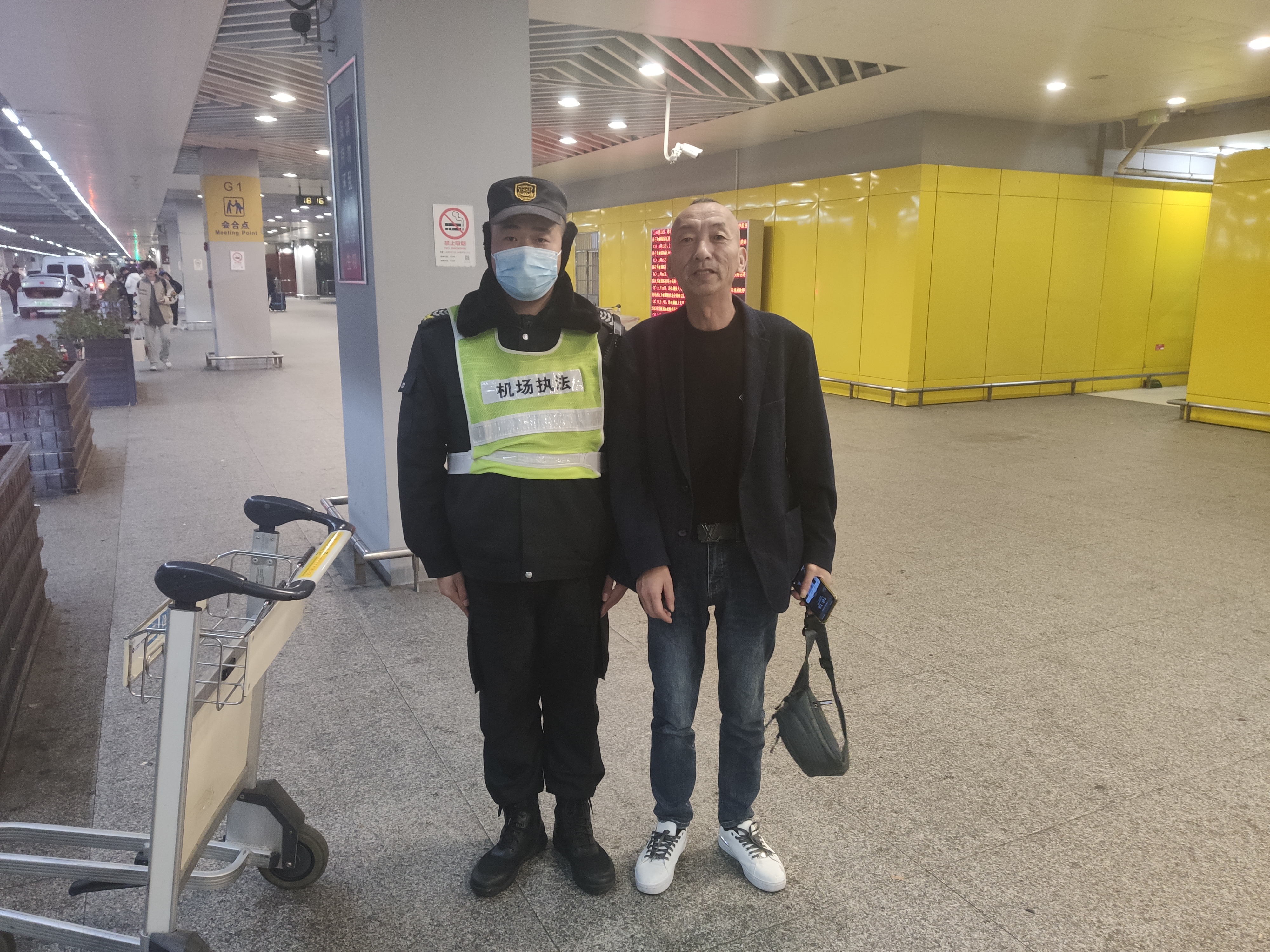 12月28日17:40,宗保公司駐浦東機場(chǎng)項目員工王道群在P2停車(chē)庫一層G2區撿到一個(gè)挎包,內有錢(qián)包、身份證和銀行卡等物品,報告班組長(cháng)后便在原地等待。大概過(guò)了半個(gè)小時(shí)左右,一男子前來(lái)尋找。王道群核實(shí)確認男子是失主后,就將挎包交還給了他。男子拿著(zhù)挎包,察看了其中物品,隨后連連向宗保員工王道群道謝。(供稿人:王大棚)