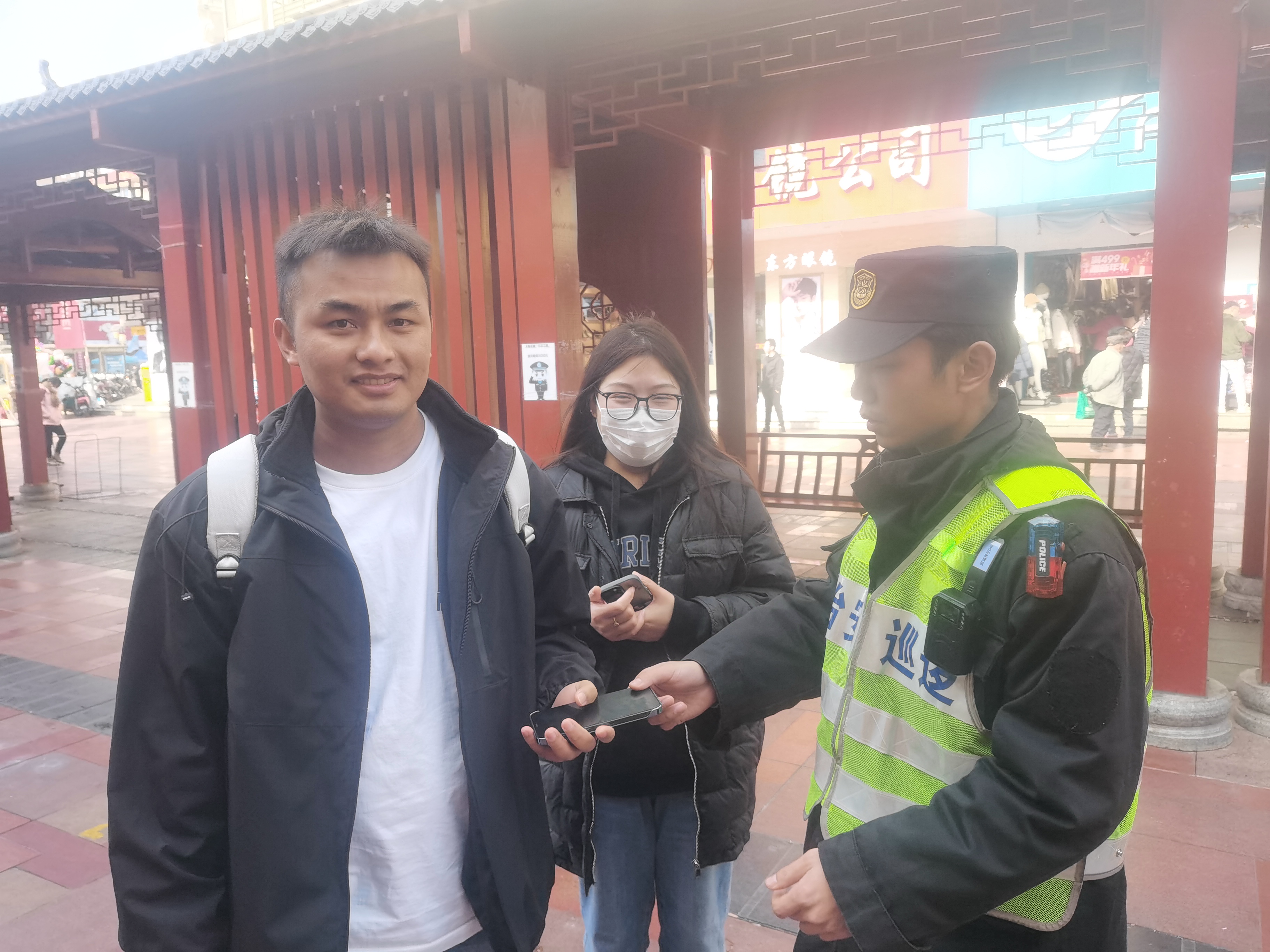 1月1日10:50,宗保公司駐浦東新區周浦派出所輔助項目員工龔清水巡邏至年家浜路南油車(chē)弄路口時(shí),撿到一部蘋(píng)果15手機。因考慮到失主可能會(huì )返回尋找,龔清水便在原地等待。大約過(guò)了10分鐘,一男子打來(lái)電話(huà)尋找手機,龔清水告知男子自己所在位置,但男子表示對所說(shuō)的位置不是很熟悉,擔心找不到。龔清水聽(tīng)聞就主動(dòng)說(shuō)可以幫忙將手機送過(guò)去。11:15,龔清水在康沈路步行街街口找到了該男子,核實(shí)確認其是失主后,將手機交還給了他。男子拿著(zhù)手機,激動(dòng)地一再向宗保員工龔清水表示感謝。(供稿人:馬應龍)