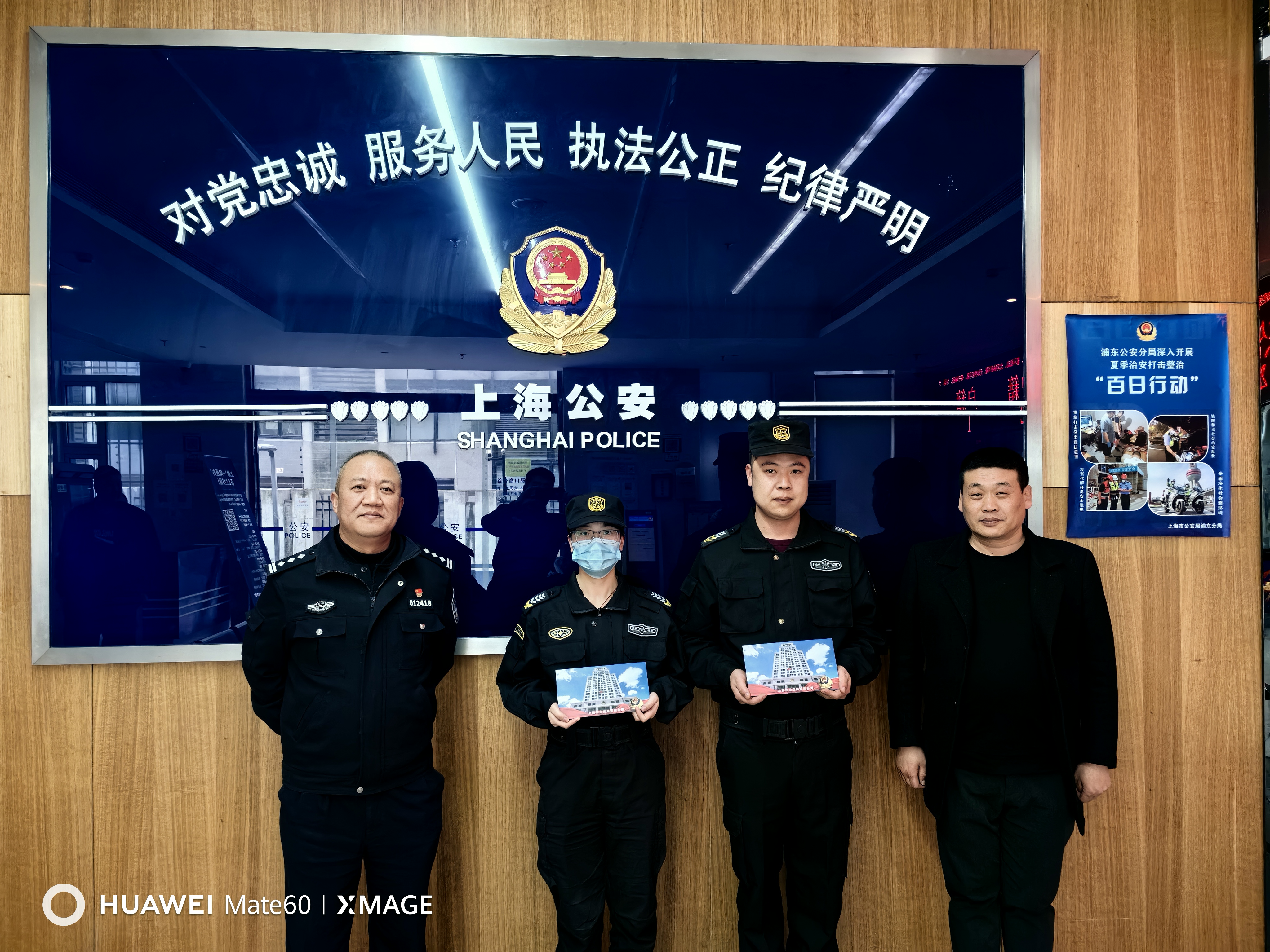 1月29日上午,宗保公司駐浦東新區公安分局臨港新城派出所輔助項目員工李漢濤和謝婷婷因自律克制忍讓、輔助執法規范受到派出所的表?yè)P獎勵。