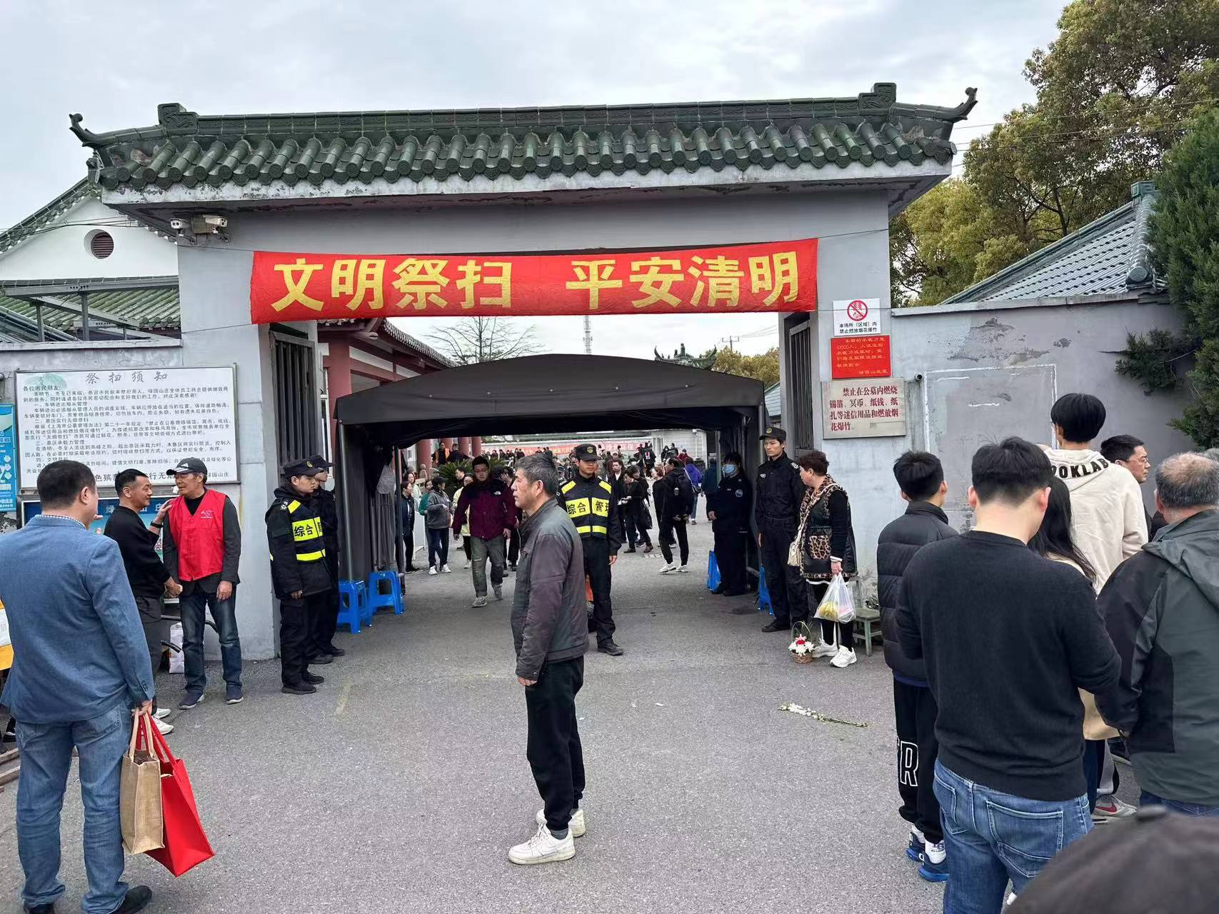 清明祭掃期間,公司協(xié)助參與上海、浙江杭州等地30多個(gè)公墓陵園的秩序維護。員工們堅守崗位、神情肅然,開(kāi)展祭掃防火宣傳,指引車(chē)輛有序停放,勸導市民群眾文明祭掃,助力完成了清明節祭掃安全保障工作,得到了甲方領(lǐng)導的好評。