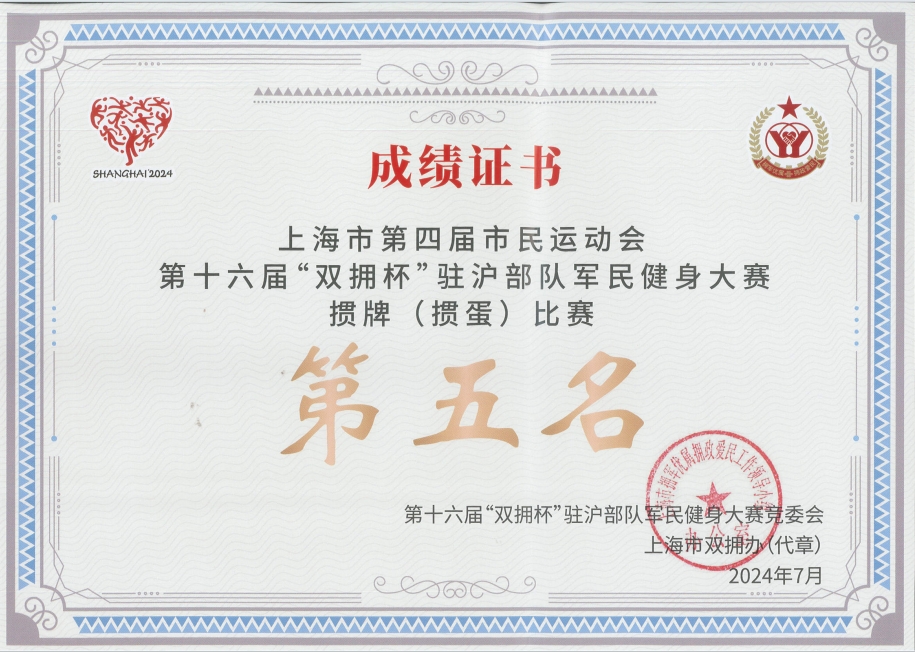 7月4日至7月14日,由上海市雙擁辦、上海警備區政治工作局、上海市體育局、上海市擁軍優(yōu)屬基金會(huì )主辦的以“牢記使命礪精兵,健身強軍爭第一”為主題的第十六屆“雙擁杯”駐滬部隊軍民健身大賽開(kāi)賽,宗保公司作為退役軍人創(chuàng )辦企業(yè)參加大賽。