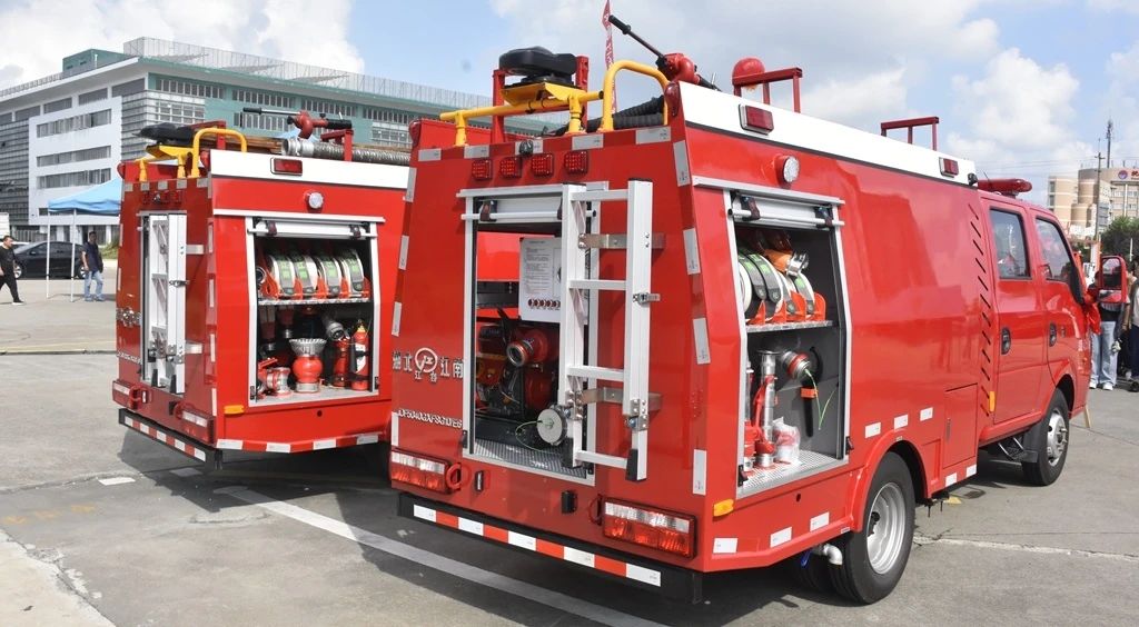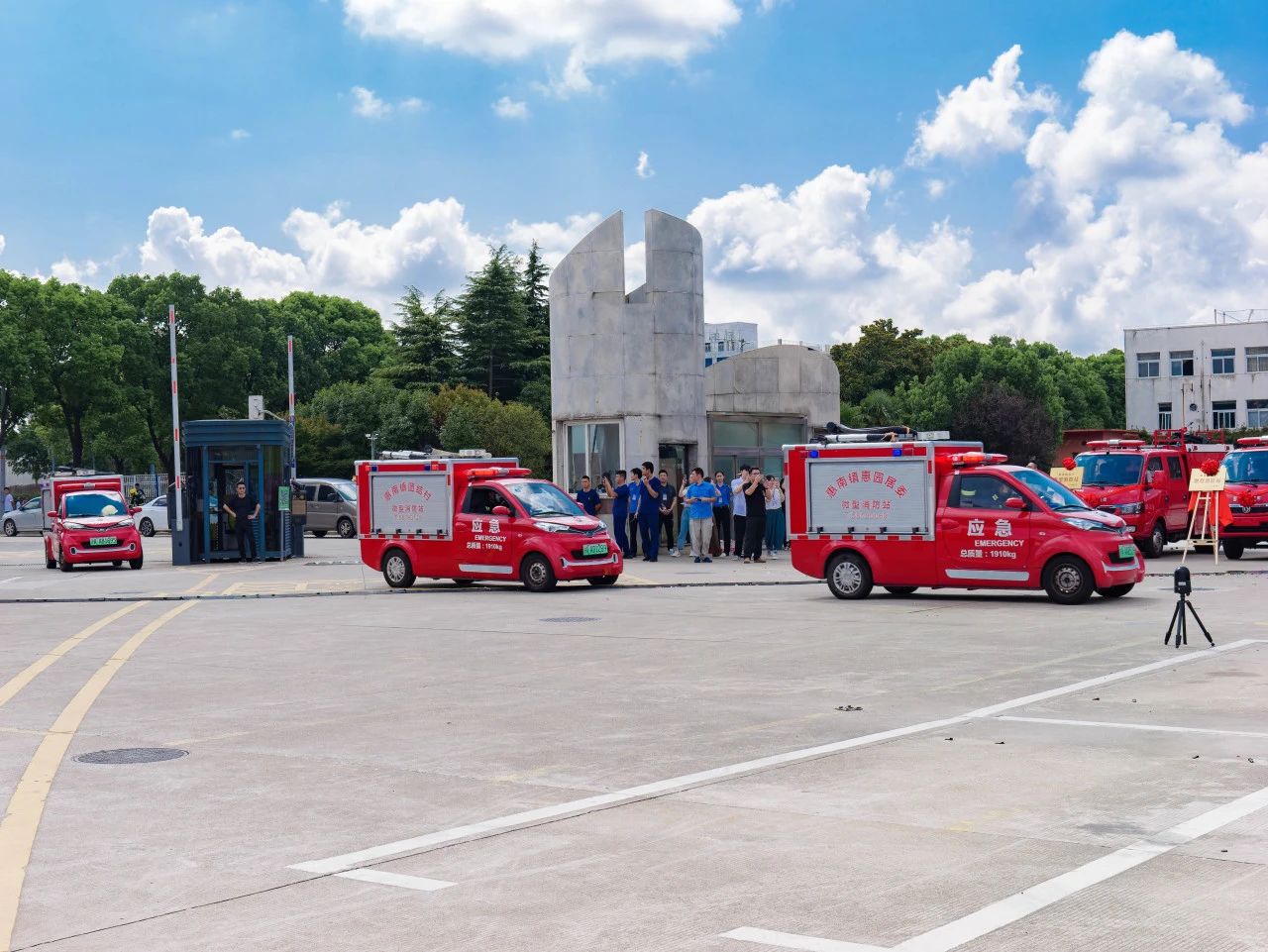 9:00綜合演練開(kāi)始前,浦東新區消防救援支隊支隊長(cháng)姜亦山、副支隊長(cháng)吳新、惠南鎮黨委書(shū)記江臻宇、黨委副書(shū)記、鎮長(cháng)楊揚共同為兩個(gè)微型消防站揭牌,隨后領(lǐng)導們觀(guān)看了微型消防站配置的消防車(chē)輛和滅火救援器材展示。