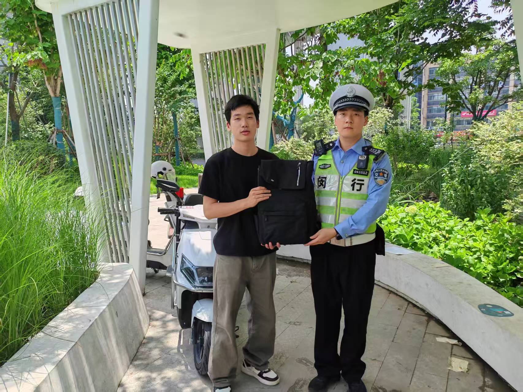 劉飛主動(dòng)上前詢(xún)問(wèn),男子說(shuō)女兒把手提包忘記在單車(chē)筐里了,里面有購物卡現金等重要物品。
