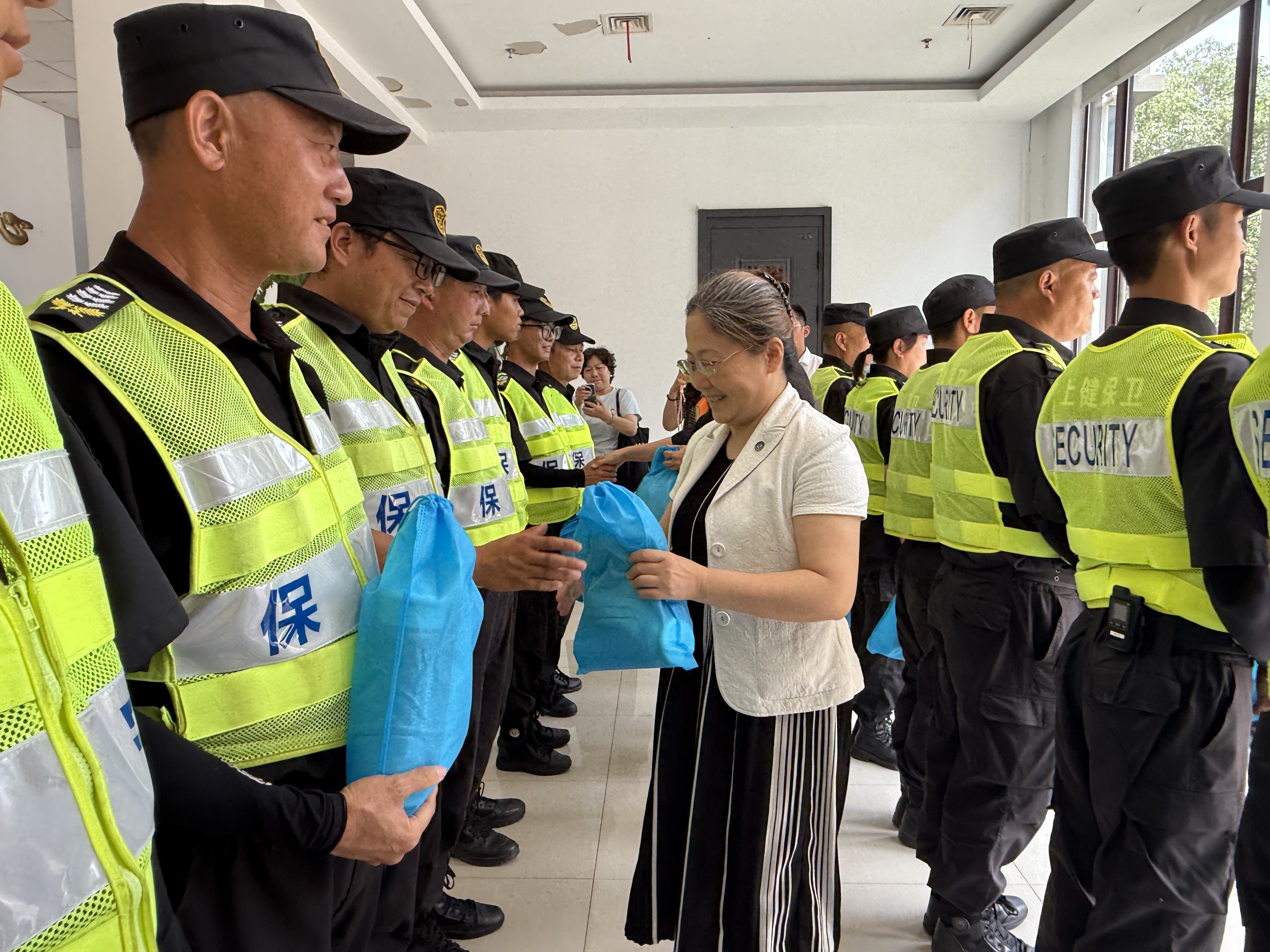 上海宗保保安服務(wù)有限公司是一家由退役軍人創(chuàng )辦的企業(yè)。公司秉持“規范經(jīng)營(yíng) 誠信為本 服務(wù)至上”的發(fā)展理念,抓管理促規范,抓隊伍強素質(zhì),抓服務(wù)增信譽(yù),公司員工綜合素質(zhì)過(guò)硬,甘于吃苦、能打硬仗。連日來(lái),他們頂著(zhù)烈日,冒著(zhù)酷暑,堅守在崗位第一線(xiàn),助力完成了甲方賦予的各項工作任務(wù)。他們的敬業(yè)精神贏(yíng)得了甲方的表?yè)P點(diǎn)贊,他們的工作表現得到了甲方的充分肯定,近日甲方領(lǐng)導看望慰問(wèn)公司員工,致敬他們的敬業(yè)奉獻,感謝他們的辛勞付出。