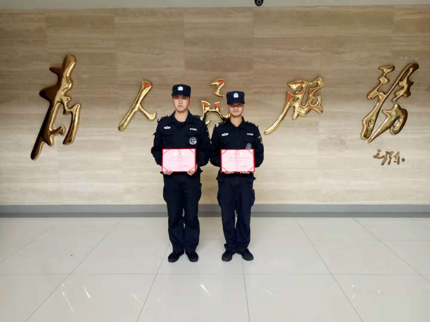 11月20日下午,民泰(宗保)五常項目特保隊員張小龍和潘森林拿著(zhù)優(yōu)秀學(xué)員證書(shū),激動(dòng)萬(wàn)分。