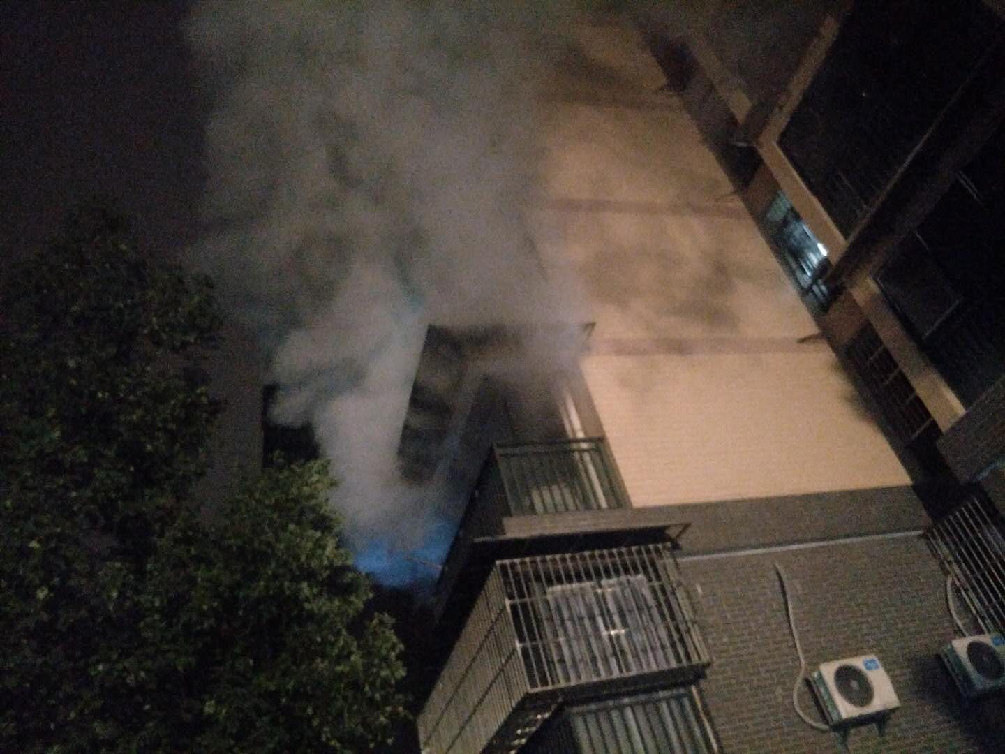 幾名隊員 沖過(guò)去一看,現場(chǎng)火勢較大,濃煙滾滾。隊員們立即上報值班室,并拉起警戒線(xiàn)。2名隊員上樓開(kāi)窗通風(fēng),挨家挨戶(hù)敲門(mén)通知住戶(hù),并幫忙攙扶老人小孩先撤離。