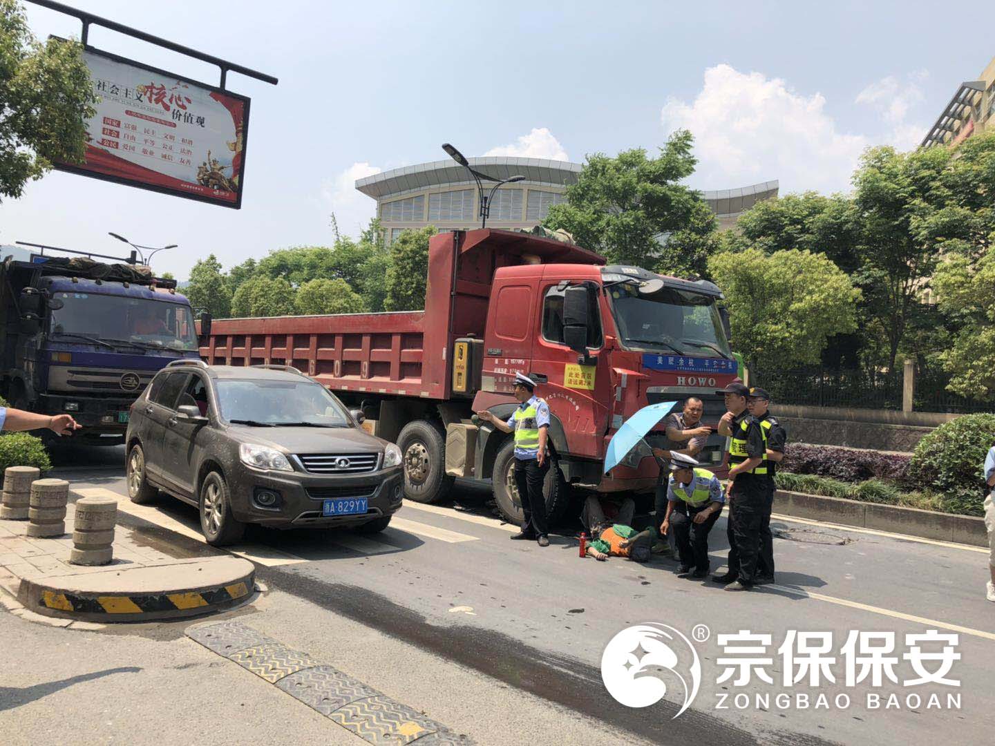 當日上午10:50分左右,民泰隊員巡查至余杭區閑林街道閑富北路時(shí),發(fā)現前方發(fā)生了一起電動(dòng)車(chē)與工程車(chē)相撞的交通事故。隊員們立即向事故現場(chǎng)奔去并報告上級請求支援?,F場(chǎng)特保隊員詢(xún)問(wèn)傷者傷勢情況并安撫其情緒,協(xié)助報警叫救護車(chē)。隨著(zhù)增援隊員的趕來(lái),隊員們分工積極指揮現場(chǎng)交通,維護現場(chǎng)秩序,避免發(fā)生二次事故。