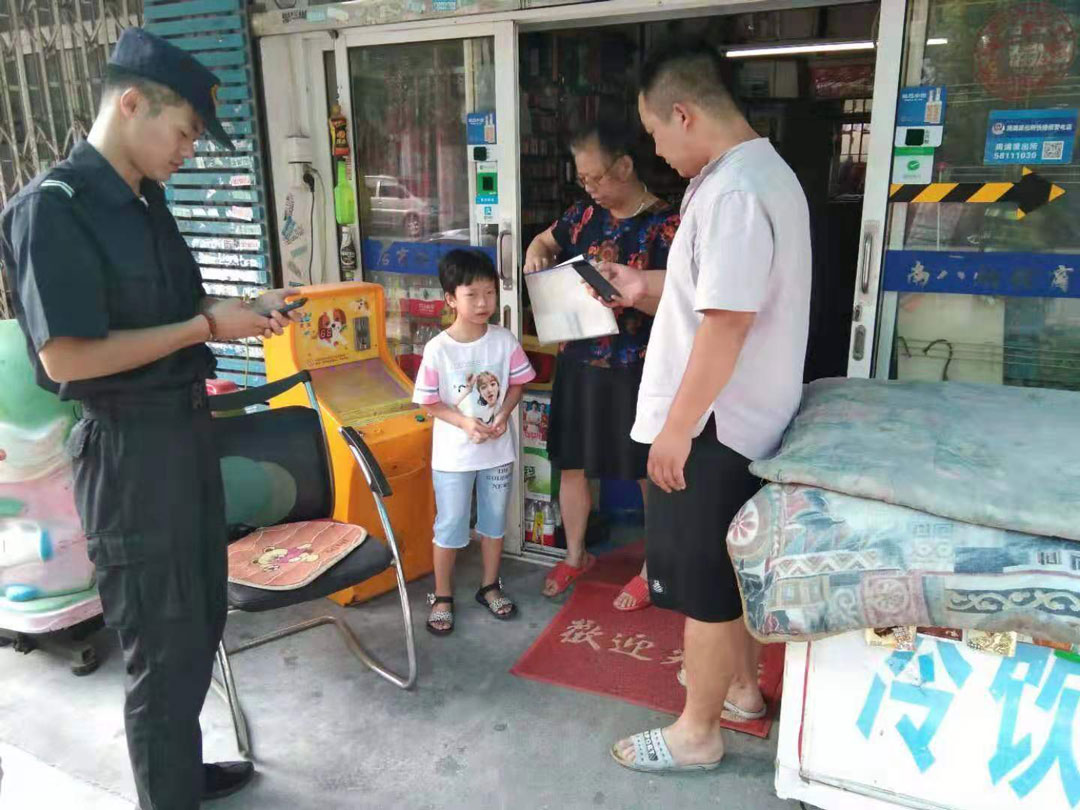當日,當宗保周浦市容項目隊員吳曉龍、裴幸凱、任明強在東南菜場(chǎng)收費口巡邏時(shí),發(fā)現走失兒童一名。經(jīng)詢(xún)問(wèn)得知,該小孩住在韻浦路一家名叫“XXXX”的店鋪。