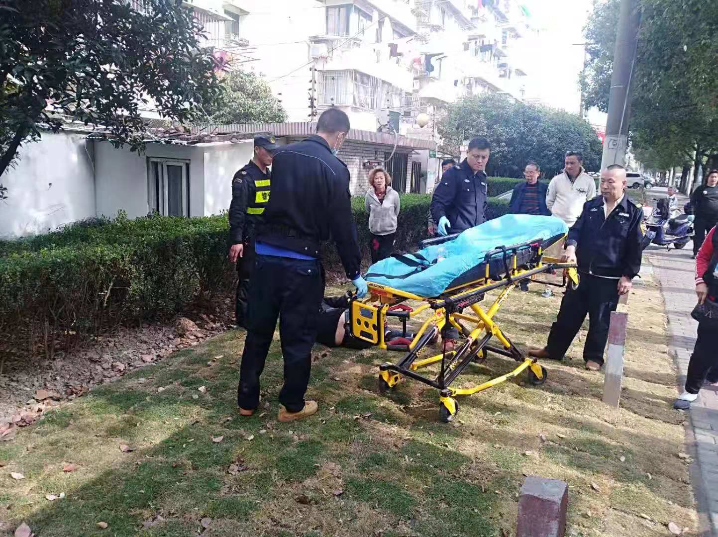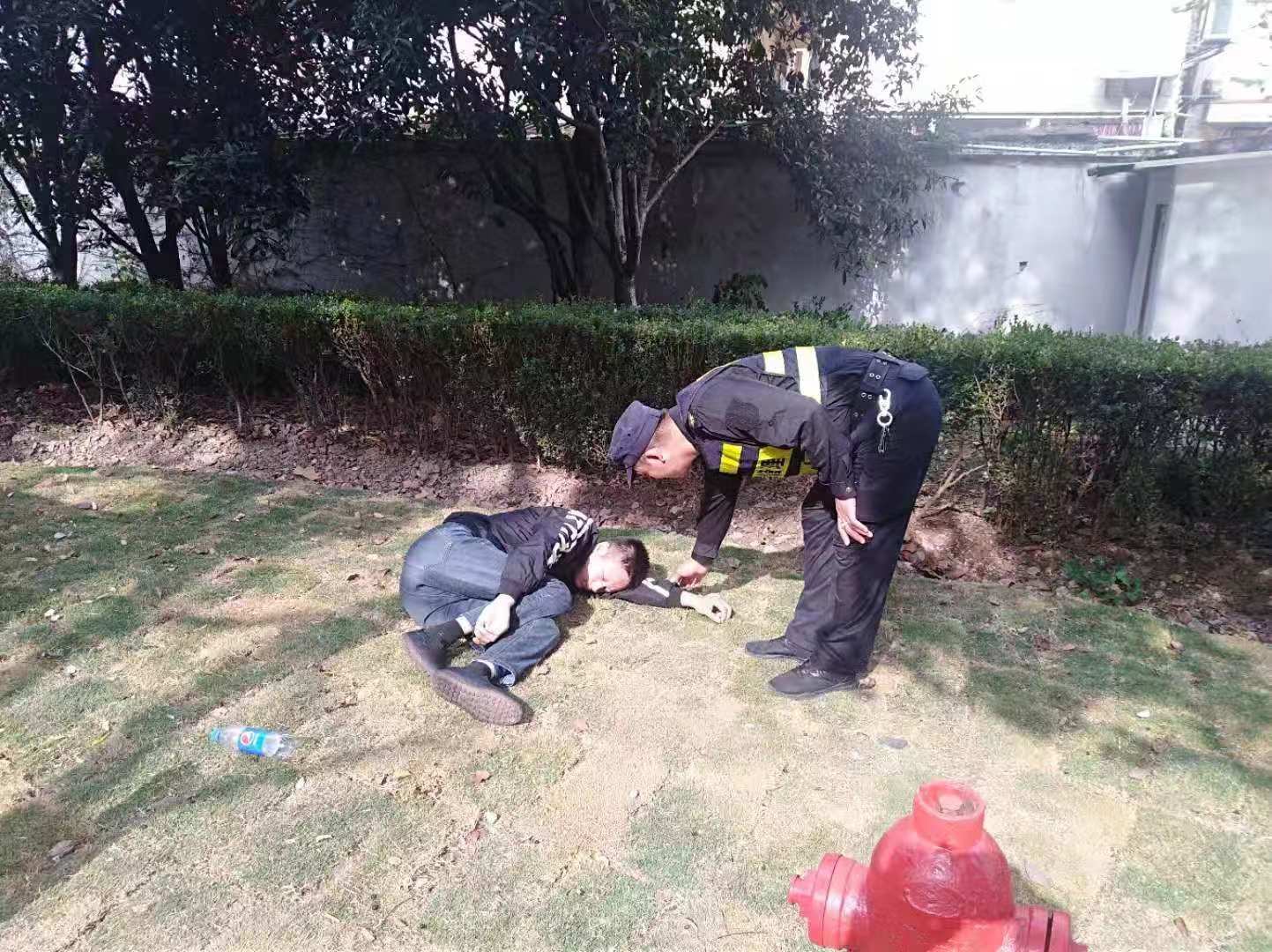 當天10:20左右,張治付巡邏至海陽(yáng)路香樟園小區門(mén)口時(shí),發(fā)現路邊綠化帶內躺著(zhù)一名男子。張治付第一反應男子應該是醉酒了,但上前查看后未聞到酒味。