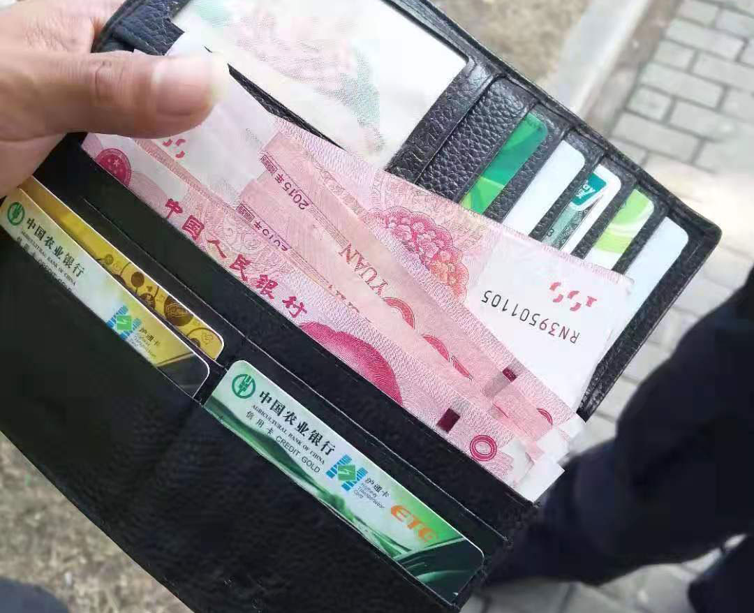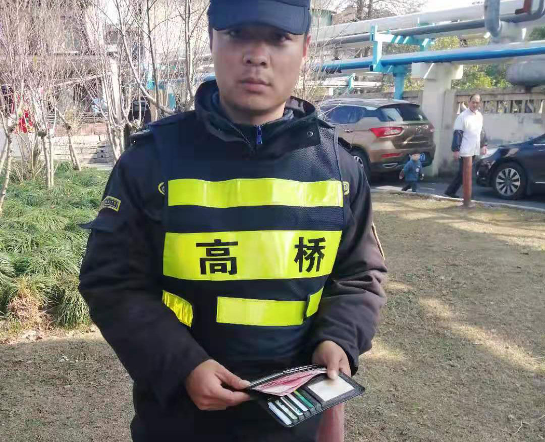 2020年1月6日,宗保公司駐高橋市容項目隊員王金奇,巡查至浦東北路草高路交叉口時(shí),發(fā)現路邊有一個(gè)錢(qián)包,拍照取證后撿起清點(diǎn),錢(qián)包內有現金1300元、身份證一張、駕駛證一本、各類(lèi)銀行卡8張。