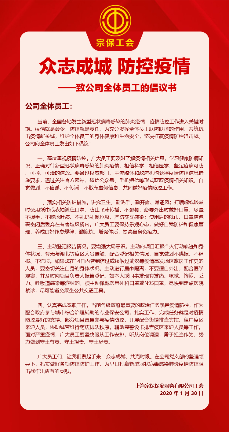 眾志成城 防控疫情 ——致公司全體員工的倡議書(shū)