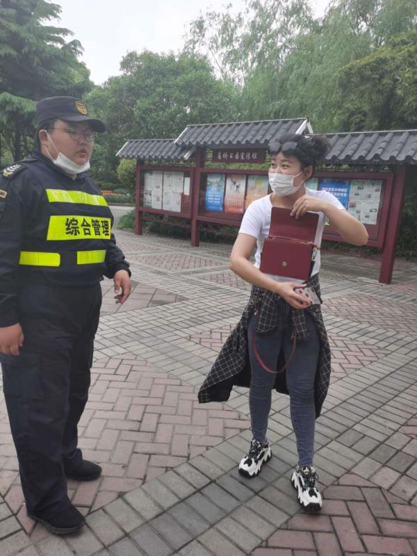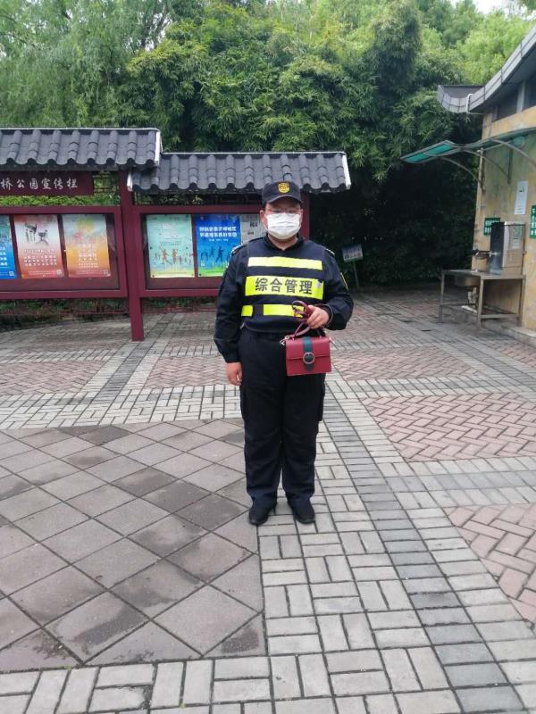 小陳和小鄭第一時(shí)間將情況上報帶班組長(cháng),并按照要求在原地等待失主。大約20分鐘后,一名女士十分焦急地走過(guò)來(lái),好像在找東西。陳阿麗和鄭世豪見(jiàn)狀上前詢(xún)問(wèn),經(jīng)核實(shí)身份確定是失主本人,便把挎包歸還。