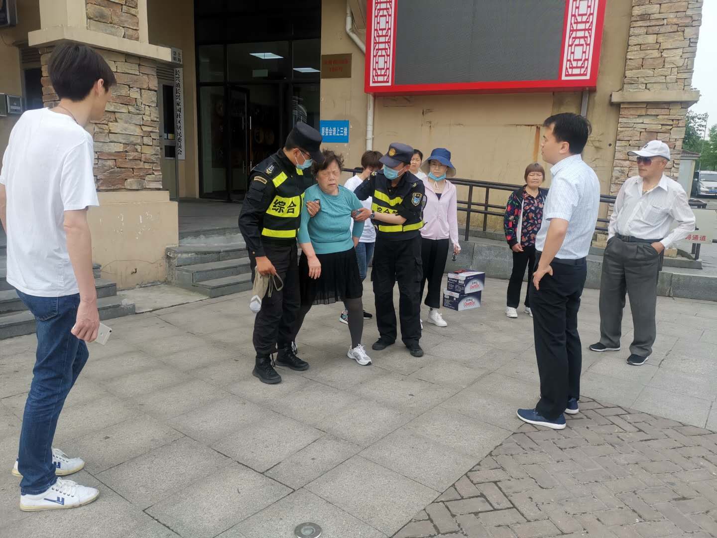 5月18號6:50,崇明長(cháng)興島項目隊員張耀華在一街區華聯(lián)超市進(jìn)行日常市容管理時(shí),突然聽(tīng)到一聲大喊,循聲過(guò)去看到一位老奶奶倒在地上。小張急忙趕過(guò)去,將躺在地上疼得發(fā)抖的老奶奶扶到椅子上休息,詳細詢(xún)問(wèn)了老奶奶發(fā)生的情況和親屬的聯(lián)系方式。原來(lái)老奶奶上樓梯時(shí)不小心一腳踩空,從樓梯上摔了下來(lái)。見(jiàn)老奶奶休息一會(huì )無(wú)大礙后,與同事一起把老奶奶送到家里。