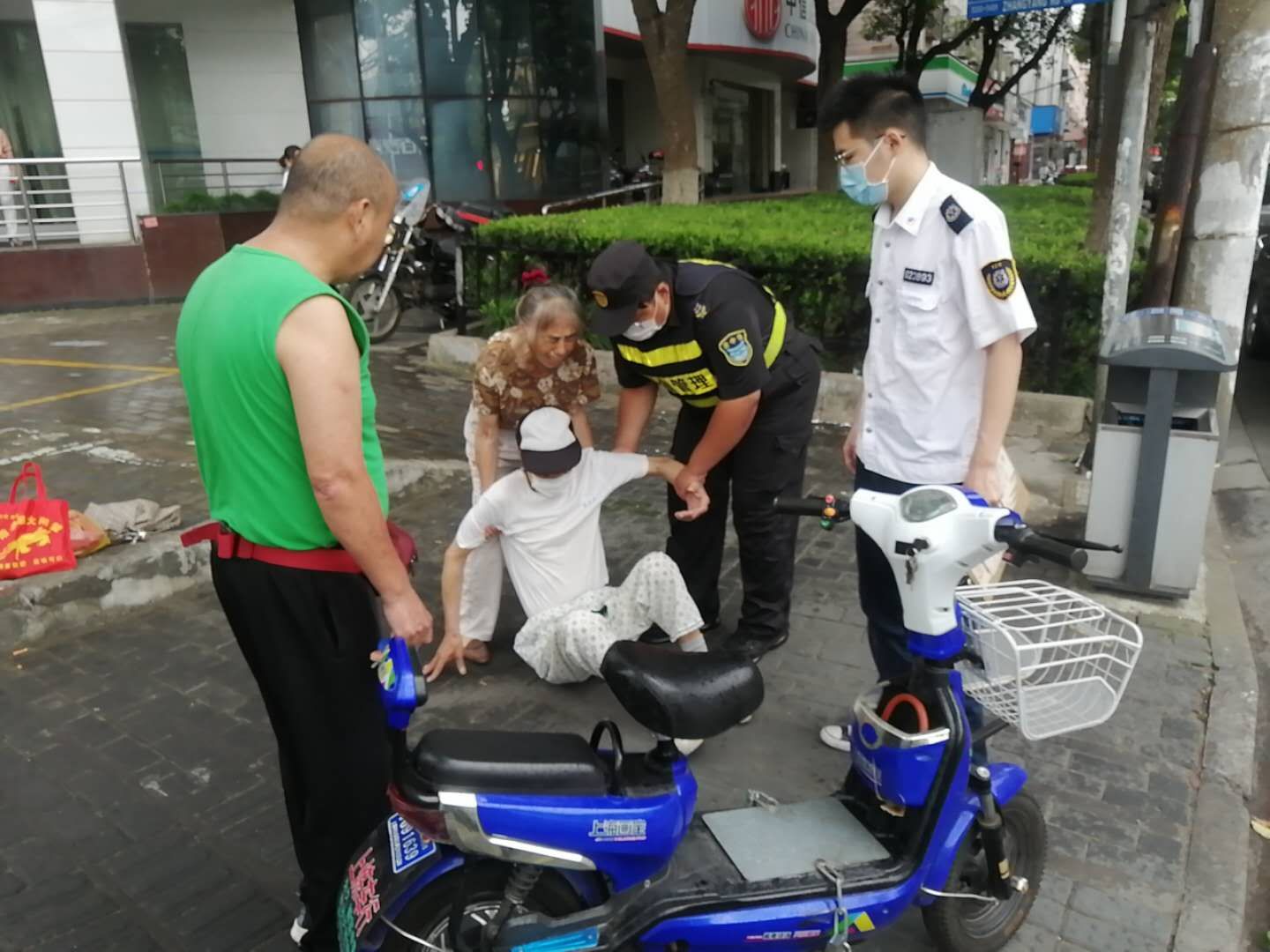 老人騎車(chē)摔倒 保安熱心幫助--公司駐高橋市容項目隊員救助摔傷老人