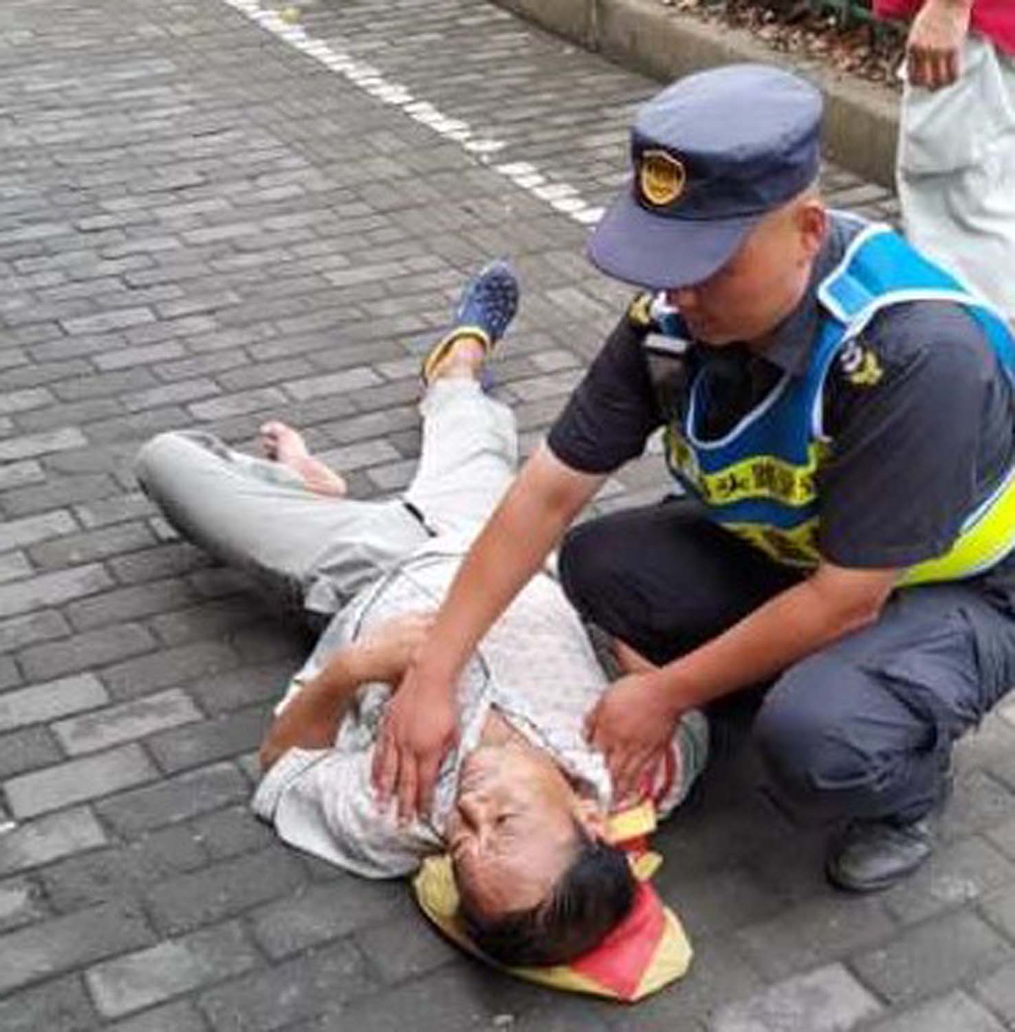 8月11日8點(diǎn)左右,小網(wǎng)格副組長(cháng)劉昆和隊員宋文松進(jìn)行網(wǎng)格巡查時(shí),發(fā)現一位老人躺在路邊人行道上。