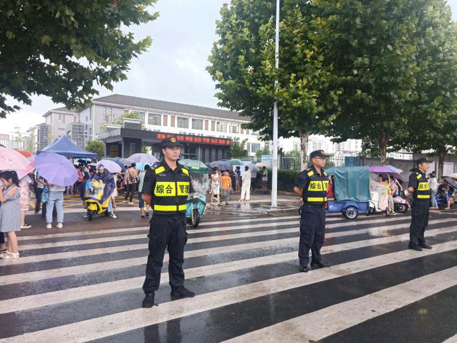 根據甲方要求,結合當地天氣情況,綜合臺風(fēng)等突發(fā)因素的影響,公司選派人員參與早晚高峰的護校工作,做好學(xué)校周邊區域的治安和交通狀況巡查,加強上學(xué)和放學(xué)時(shí)間段的管理,全力維護學(xué)校正常教學(xué)和生活秩序。