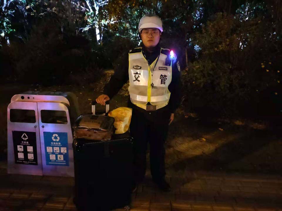 供稿人:周鹍11月9日,宗保公司閔行新虹街道項目輔警隊員宋金峰撿到一個(gè)行李箱,上交新虹橋樞紐派出所。