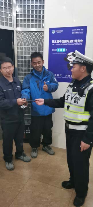 半小時(shí)過(guò)去了,仍無(wú)人前來(lái)尋找,溫玉林便上報帶班骨干,將手機送交到虹橋派出所,并向值班民警說(shuō)明情況。之后,溫玉林返回崗位繼續執勤!